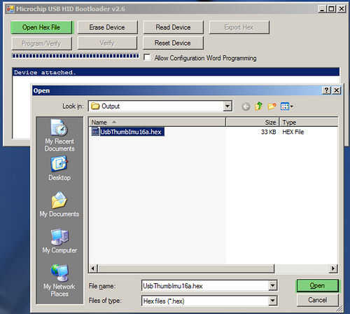 El HEX para el PIC es aquí. Como un kit, la foto viene preprogramada y lo ha programado, puede actualizar el firmware con la utilidad de actualización un poco - aquí.