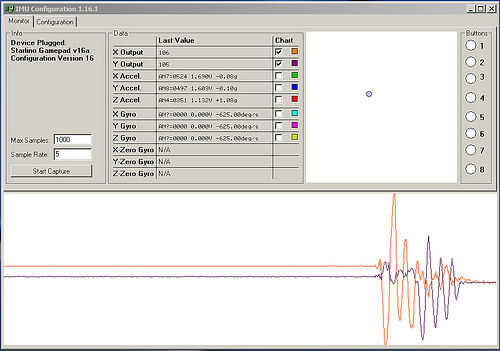 El movimiento Gamepad utiliza controladores HID estándar, pero puede utilizar la utilidad de configuración de IMU (windows) - Descargar aquí para hacer una configuración mejorada / calibración. Starlino ha hecho una gran guía sobre la configuración con la utilidad de la IMU aquí (pdf).