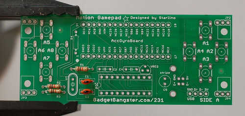 Hay un condensador de cerámica de .1uF axial, que va en el C4. Axial significa los cables por los extremos - como una resistencia. Usted podría ser capaz de ver la marca en el cuerpo de éste - es '104'. También no es sensible a la polaridad.