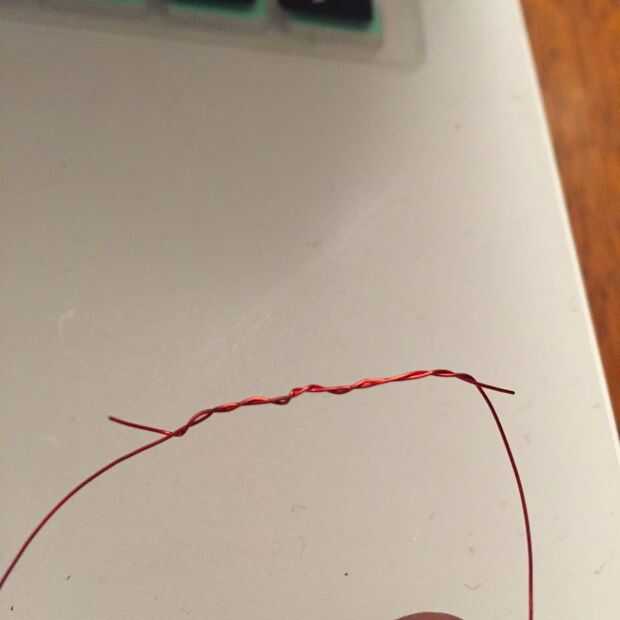 9. Conecte un extremo del cable de 20 pulgadas a uno de los extremos de la Arenados de una de las bobinas. Para ello girando ambos extremos juntos firmemente varias veces. Hacer esto para el otro cable de 20 pulgadas así. (Cuadro #1)