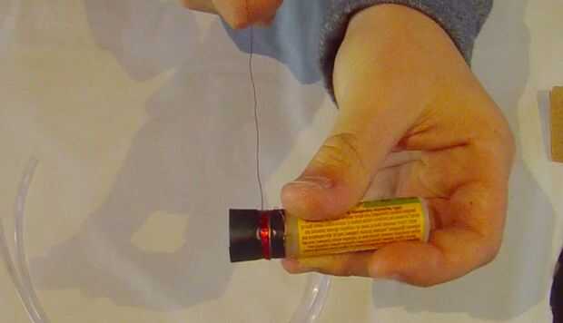 2. cortar un pequeño trozo de cinta aislante, envuelva alrededor un extremo del palillo del pegamento boca abajo (por lo que fácilmente puede resbalar de bobina de barra de pegamento).