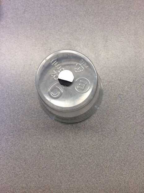 7. Coloque uno de los imanes de neodimio en la parte superior fuera de la Copa y en la parte superior del interior de la Copa.
