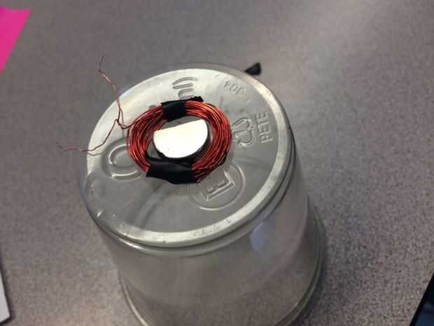 9. poner sobre una franja de 3 pulgadas de cinta aislante a través de la bobina y el imán, para que sean seguras y no se mueven.