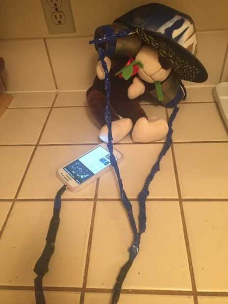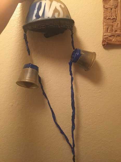 2. Poner en el sombrero y poner los dos extremos abiertos de ambas tazas en/next la oreja.