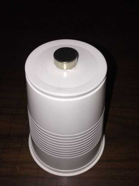 .Paso 1: Procedimiento y componentes de sonidoPasos de procedimiento:1. Tome un vaso de plástico y ponerlo boca abajo sobre una mesa.2. con cuidado tomar uno aparte de sus pares de imanes y ponerlo en la parte inferior de la Copa.3. Tome el otro imán