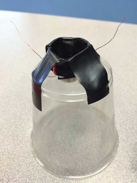 4. golpee hacia abajo de la bobina de voz a la taza con 2 piezas de cinta aislante