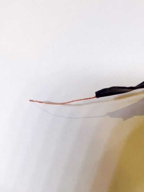 1. Una vez que haya terminado de enrollar el cable alrededor de la barra, tire aproximadamente dos pulgadas de cada extremo del alambre. (Estamos haciendo esto por lo que podemos conectar el cable al enchufe AUX.)