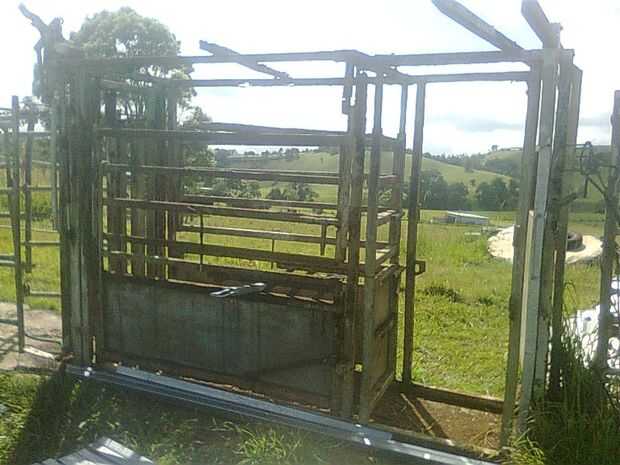 Bastante podrido pero funcionaba bien y era bastante amplia para mi Droughtmaster toros que pesan 1000 Kilos además de algunos. Mal poner estas fotos como puede explicar algo que echaba de menos.