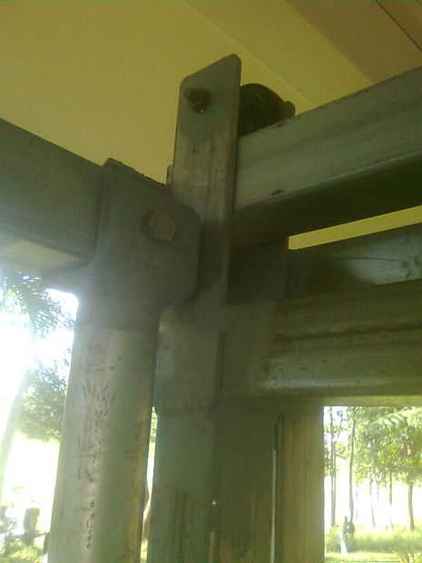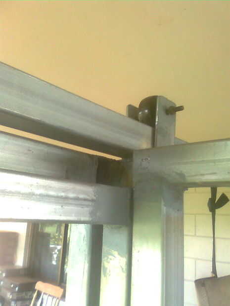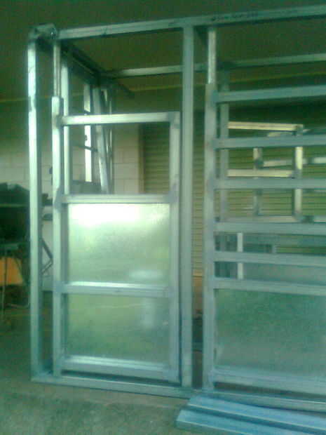 Las puertas se abisagran por tener un tubo galvanizado de dimensiones adecuadas (45 mm O/D) recorren el interior de los extremos del acero de la puerta haciendo una bisagra. Los tubos tienen una pieza de 50 mm del ángulo de la tubería es soldada con autógena en la parte inferior y un agujero de perno es colocado centralmente en la pieza lateral del ángulo y atornillado en el interior de la canal.