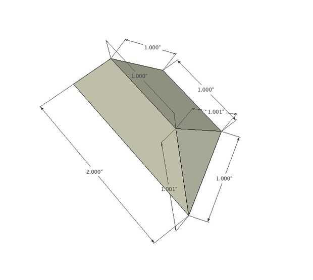 Aquí están las dimensiones que tendrá que hacer usted mismo de todo lo que quieras. Sólo asegúrese de que los triángulos en los extremos son equiláteros. Las otras dimensiones unir los 2 triángulos y si coinciden ambas piezas, se bueno para ir.