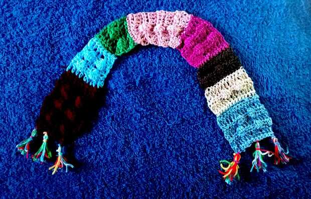 Aquí es una bufanda de bebé de ganchillo con lego. También he realizado las borlas de hilo para hacerla más hermosa. Los niños amarán. Todavía recuerdo cómo encanta construir estructuras con lego como un niño.