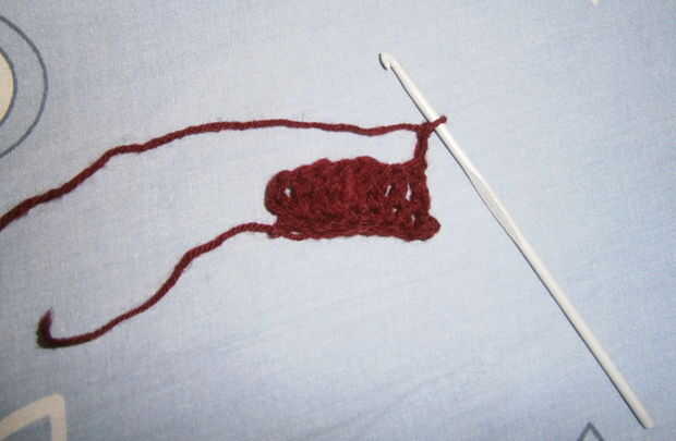 Fila 4 - a su vez, la puntada de cadena (2), medias doble crochet (3), Bobble stitch (1), medias doble crochet (2), Bobble stitch (1), medio crochet doble (3).