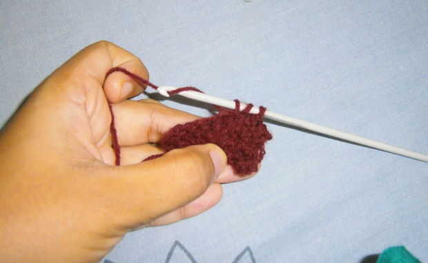 Recoger el hilo y páselo a través de los dos primeros bucles solo.