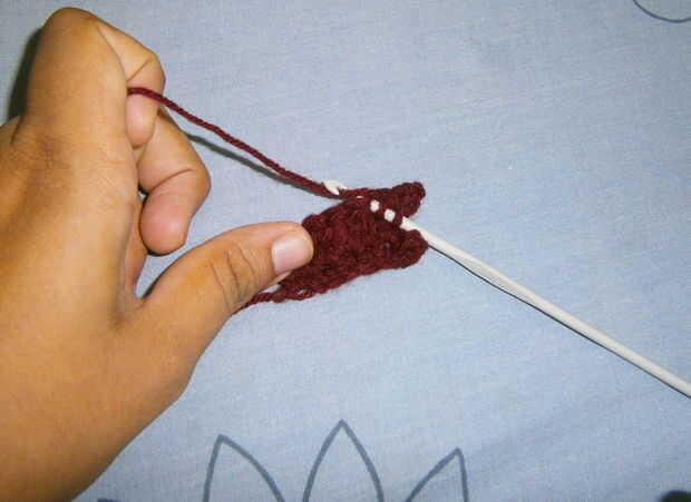 Primero coge el hilo e Inserte el gancho en la puntada siguiente.