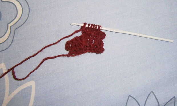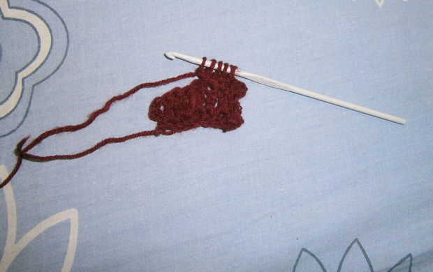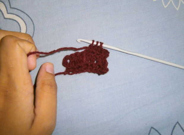 Cada vez que recoger el hilo y páselo a través de los dos primeros bucles sólo.