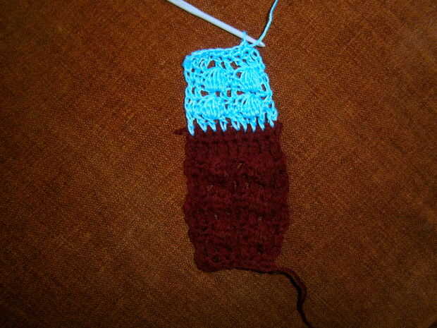 Comience siempre con punto bajo 2 y luego doble crochet. Cuando desee que una fila de las rondas usar el medio ganchillo doble y bobble stitch.