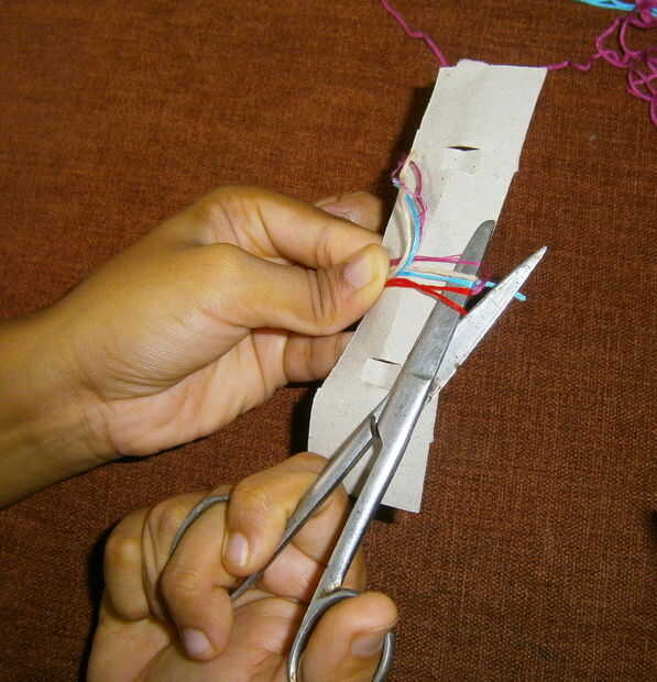 Para el hilado de borla, he utilizado diversos hilos de rosca coloreados. Quería mirar vibrante.