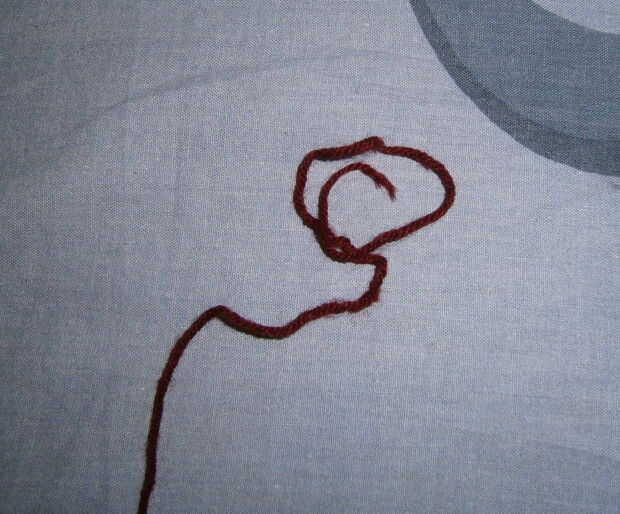 Tire del hilo para que el nudo se tira para arriba en el gancho.