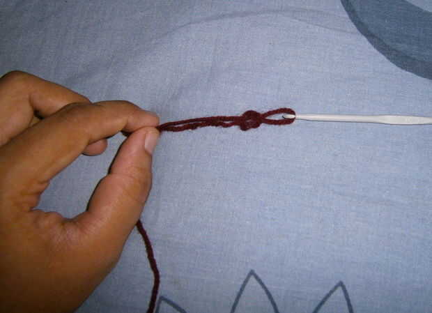 Para empezar comenzamos con el nudo del resbalón de ganchillo.