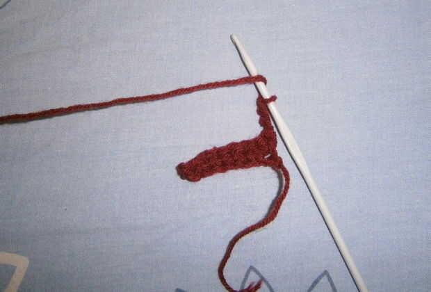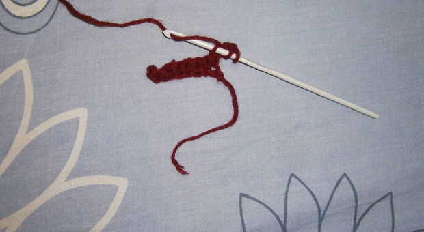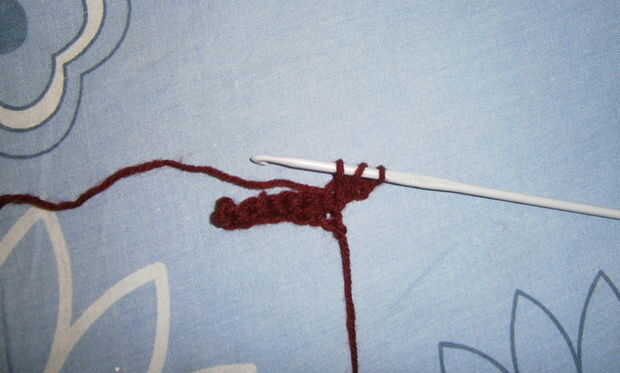 Convertir el trabajo de ganchillo. Hacer la puntada de cadena 3. Luego comenzar el crochet doble.