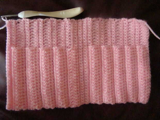Fila 26 - sc, 10 st, sc en el lazo posterior Repita para 19 más puntos (20 puntos), para formar la parte posterior de la cavidad del gancho; Gire hacia la derecha; SC en los loops gratis de los anteriores 20 sc para formar la parte frontal de la bolsa de gancho; a su vez