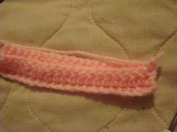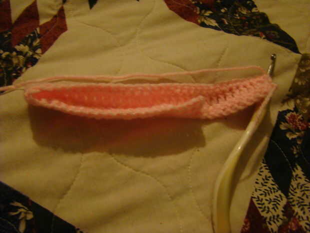 Fila 3 - sc, a lo largo de la parte delantera de la cavidad del gancho (20 sc) sc 30 puntadas volviendo al otro extremo de la parte posterior del bolsillo, ch1 girar y girar a la