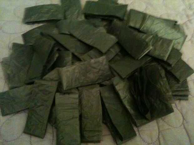 Usé 9 bolsas para este proyecto. Las tiras de arriba son de sólo 4 bolsas.