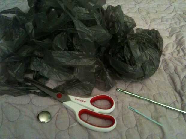 Secuencia del bolso plástico o hilo normal (he utilizado bolsas de plástico estándar. Puede aprender a hacer ganchillo con bolsas de plástico aquí)