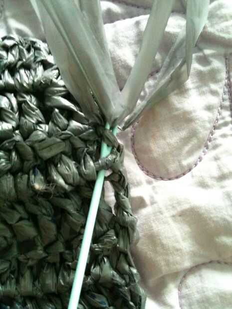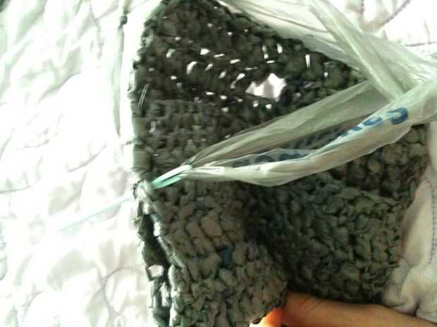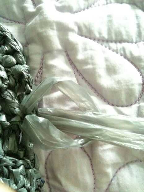Puntada del azote por los lados. Al llegar al final, atar en un nudo, recorte los extremos y luego tejerlos en.