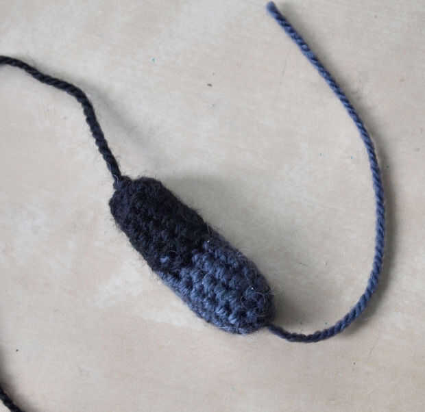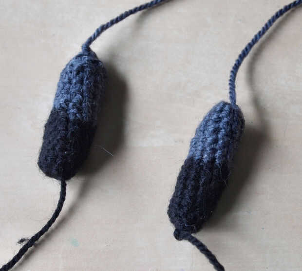 * Nota: terminé haciendo las patas más cortas que las que aparecen en la foto, tenía originalmente la parte gris y negra del mismo tamaño. Pensé que eran demasiado largo así que había acortado la parte gris de las patas a 3 rondas en vez de 5, el patrón refleja esto.