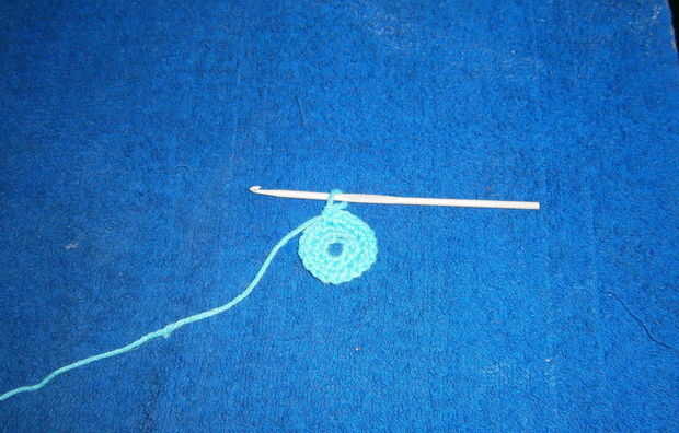 Ronda 2: * 1 MP en el sc de la 1ª ronda. 2 sc en el siguiente punto de la 1.* Ronda repetir * a * hasta el final de la ronda. Acabado en una puntada de resbalón. (18)