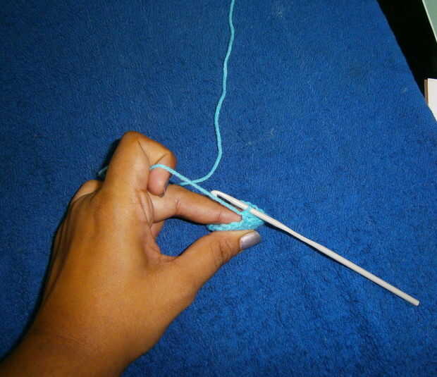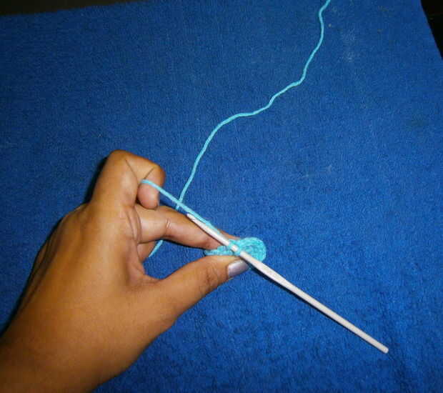 Introduzca el ganchillo a través de dos circuitos externos. Ahora tienes 3 lazos.