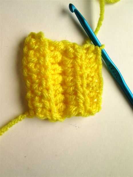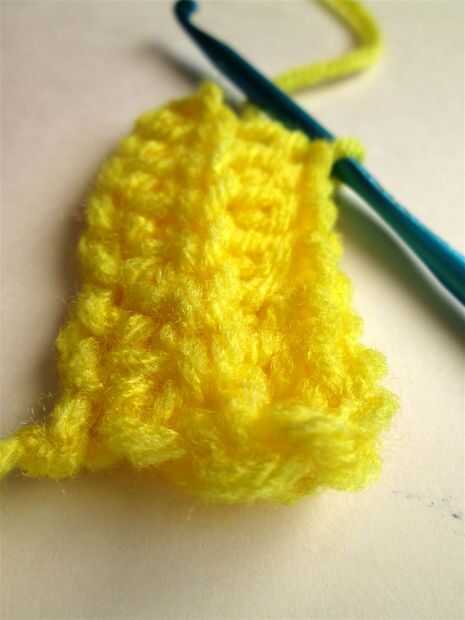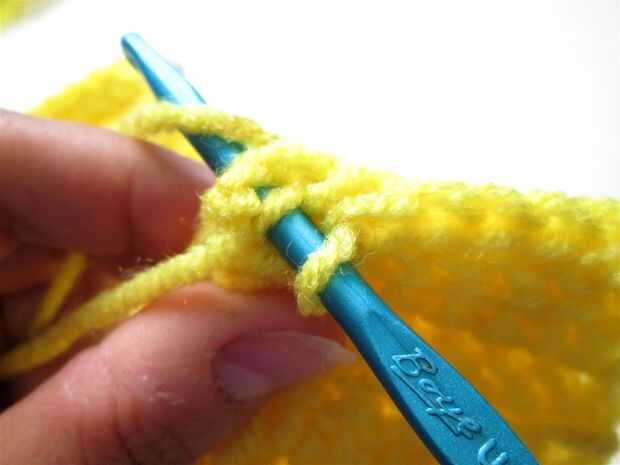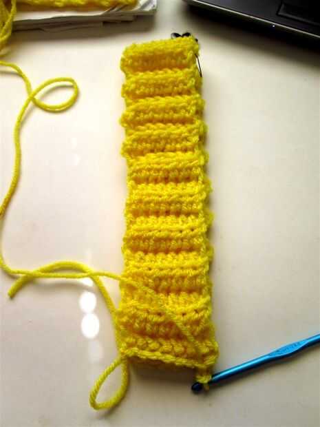 Fila 2: Ch 1, gire. En BLO (lazos espaldas sólo a lo largo de la porción de puño,) sc en primera st y en cada st a través de.