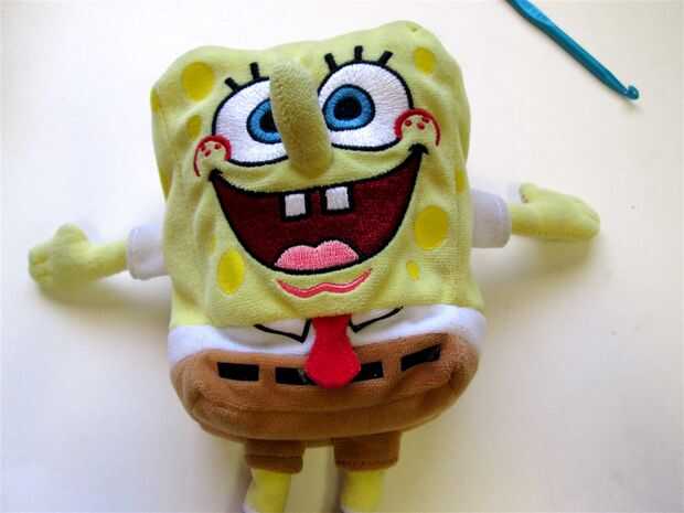 Usé mi peluche Bob esponja de hijos como el ejemplo a seguir los detalles. Utilice un ejemplo del Bob esponja que le ayude con los detalles al realizar el bordado. Tuve el peluche conmigo en todo momento referirse mientras trabaja en el sombrero.