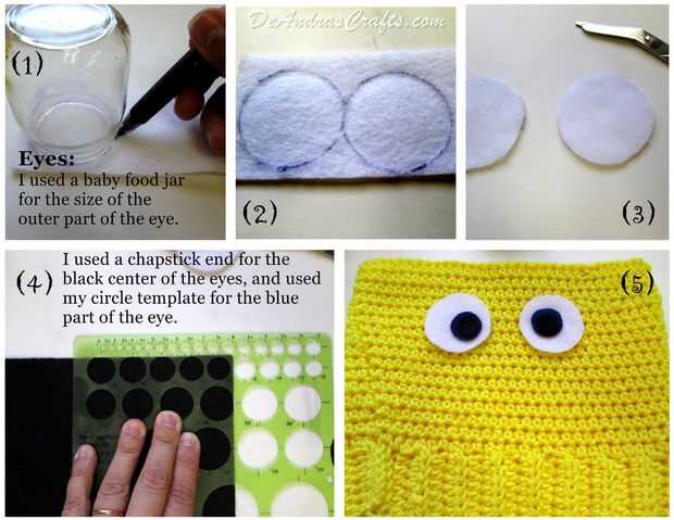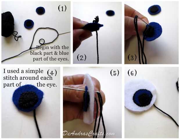 Los ojos utilizan fieltro blanco, negro y azul. Hacer dos.