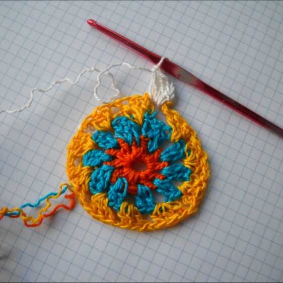Ahora podría coser los círculos un son, pero es más sencillo hacer una 4ta ronda que hará que el círculo un cuadrado. Cambio color con que va a ser la frontera de las plazas.