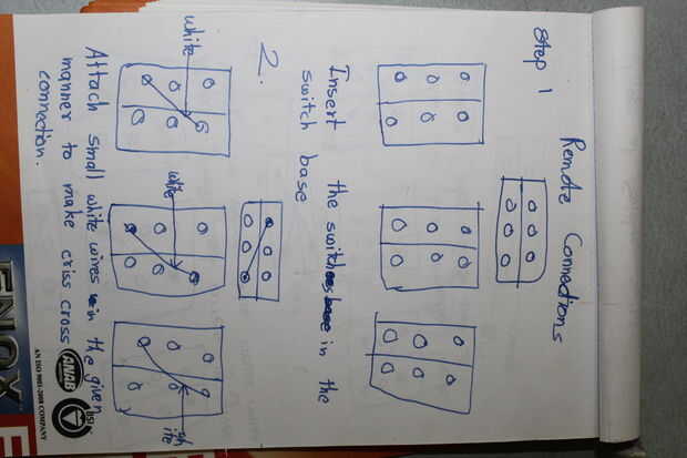 Este trabajo es realizado por un gestor de alambre. Como se puede ver en las imágenes hay cuatro interruptores. El uno horizantal superior es para el motor de las manos. Los interruptores del lado son para mover o rueda motors.and el medio uno es para el para arriba y abajo del chasis superior.