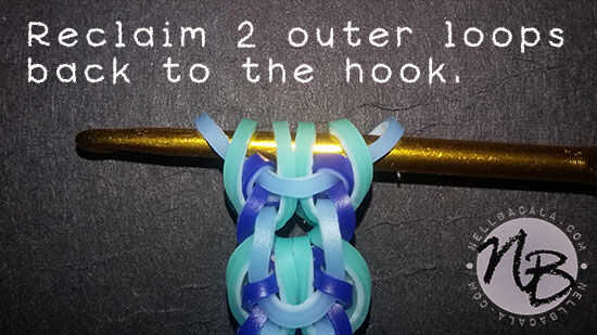 Reclamar los 2 circuitos externos hacia el gancho. Ahora debe tener 6 lazos otra vez en el gancho.