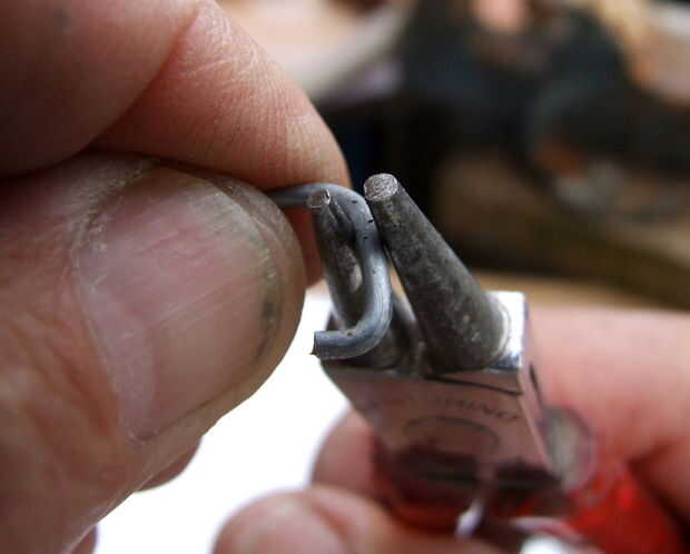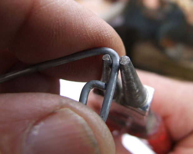 Doblar el alambre hasta una forma ovalada la mitad por un lado y dibuja cerca extremo de eje.