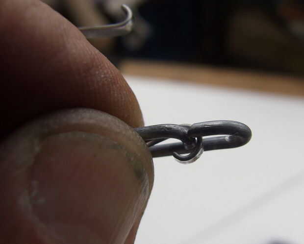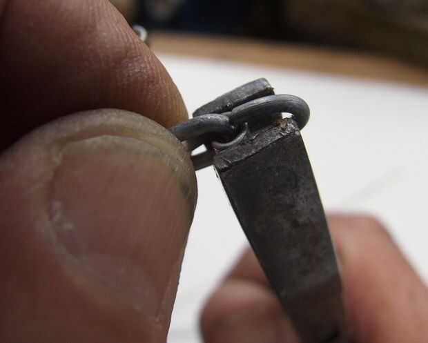 Inserte el óvalo en el círculo. Presione el círculo para cerrarlo en el pivote. El óvalo la curva a la derecha curva y perfeccionar la forma de la tira de acero.
