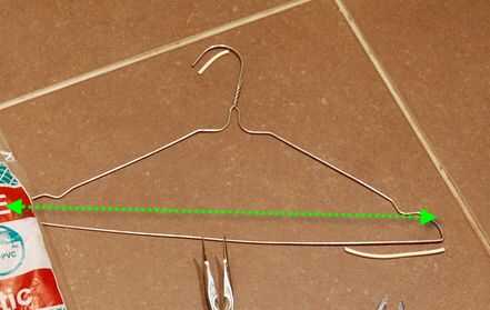 Una vez que tengas una idea clara de cómo proceder, corte un trozo de alambre por lo que no está molesto con el carrete. Para la longitud de alambre para cortar, usé la parte plana de mi suspensión de plantilla como unidad de medida. Para darte una idea, usé 4 x la longitud de la percha de "sean" y 5 x para la "romane" (por cierto "romane" es un nombre francés para una niña). Así que es +-170cm para sean uno y +-200 cm para el romane uno.