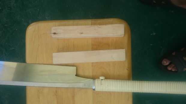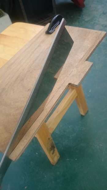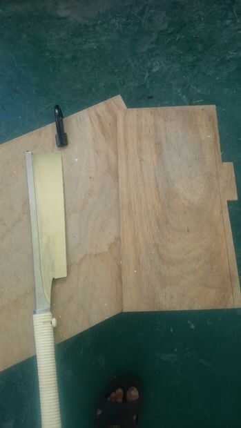 después polywood, marque el bloque de madera en piece(18cm) siquiera la mitad, luego cortar 2 piezas y hacer una sola pieza más corta que la otra una de 1 pulgada.