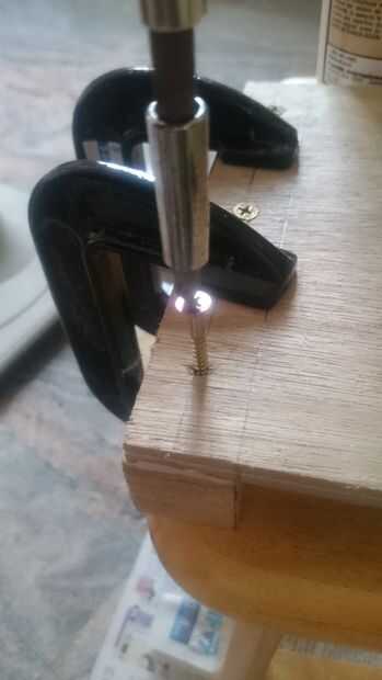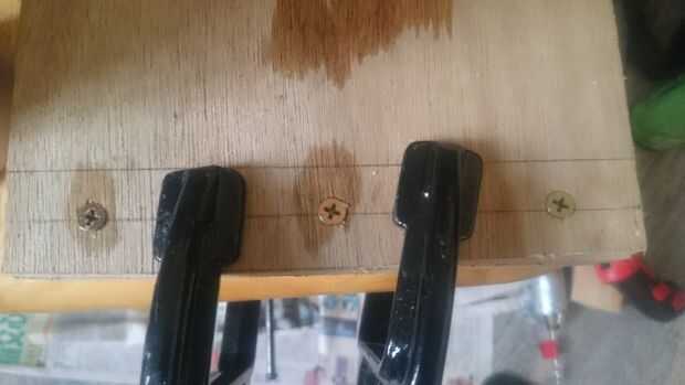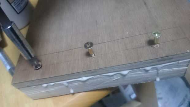 Durante el ajuste del pegamento, comenzamos a atornillar los tornillos de madera uno por uno.