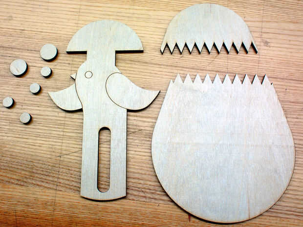 Después de lijar cada pieza fue cepillado para quitar cualquier polvo o residuo. La Asamblea principal ocurre después de la pintura, pero me decidí a sujetar el gancho a la parte inferior del huevo ahora.