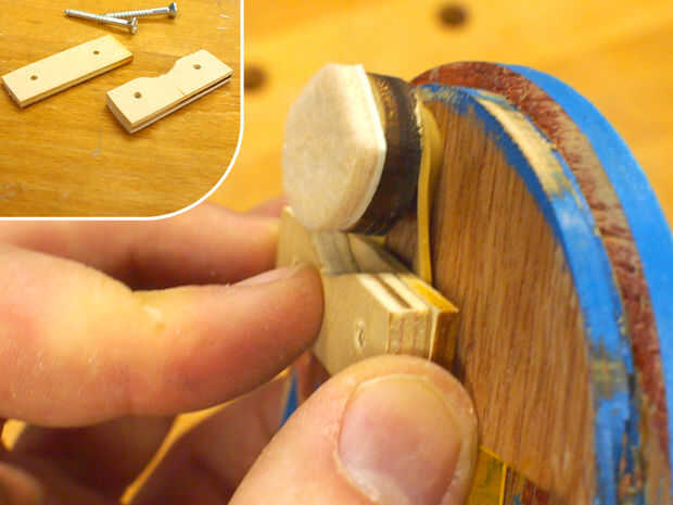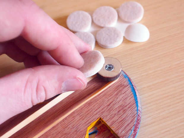 Para proteger la pared de los daños y marcas de fieltro furniature almohadillas fueron colocadas en la parte posterior de la Cala y en el sándwich de la vía.