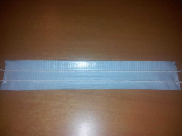 Colocar un trozo de cinta de unos 15-20cm largo en el lado pegajoso de la tabla para arriba