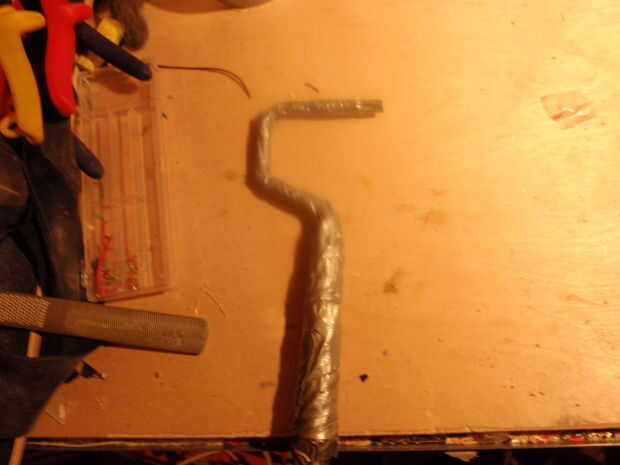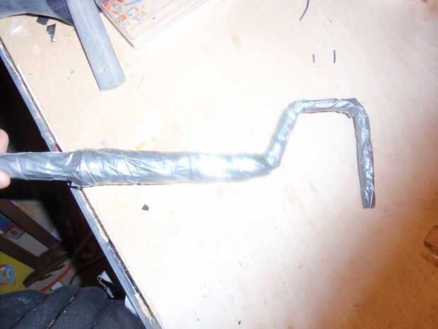 tomé mi viejo hogar hecho serpiente gancho y fijado para arriba en esto. El gancho es parte de un rodillo de pintura, y el mango es un tubo de cobre. Cinta sostiene incopora todas, y aunque soy todavía intentar en el campo, trabaja con mi cornsnake l