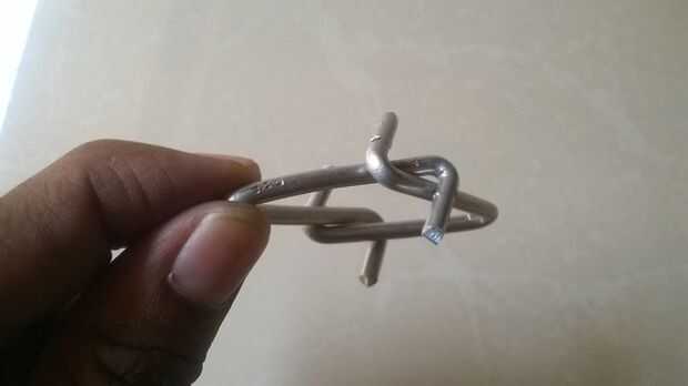 En el extremo largo doblado donde puede ver mis dedos puede colocar una cuerda o un lazo se puede hacer a gancho una a la otra ta makee un eslabón de la cadena.