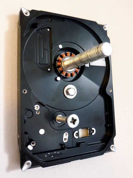 Es obvio: lo desarma y hacer algo del disco de alta tecnología dentro. Pero necesitaba ganchos, así que decidí utilizar el cuerpo del disco duro para hacerlos.