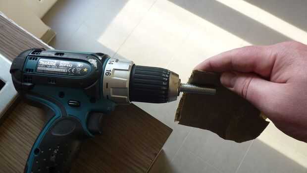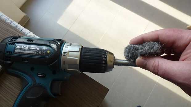 En el uso final algunas lanas de acero para más suave los bordes. Posibilidades de obtener heridos están aumentando aún más, porque la lana de acero se consigue enredada en el hilo de rosca/taladro, así que mucho cuidado.